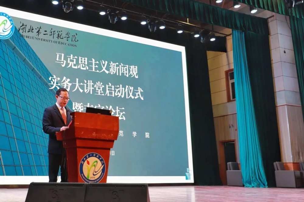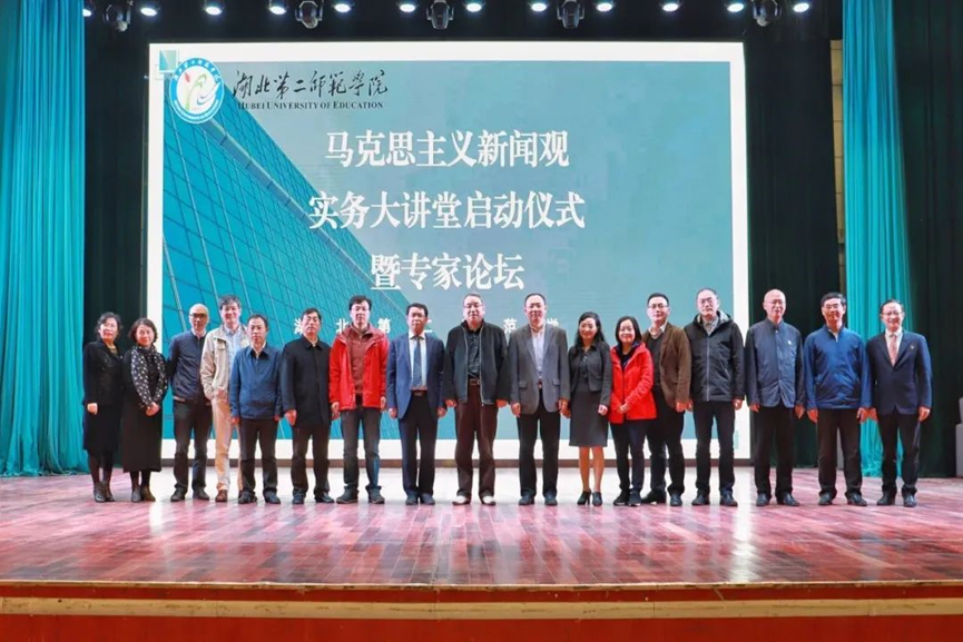 本网讯(通讯员 曹诗敏)10月31日上午,湖北第二师范学院马克思主义新闻观(以下简称马新观)实务大讲堂启动仪式暨专家论坛在我校大礼堂举办,校长郑军,党委常委、副校长黄颂及相关部门院系主要负责人出席会议,省内学界、业界嘉宾到场指导交流。新传院党总支书记徐晓主持启动仪式。