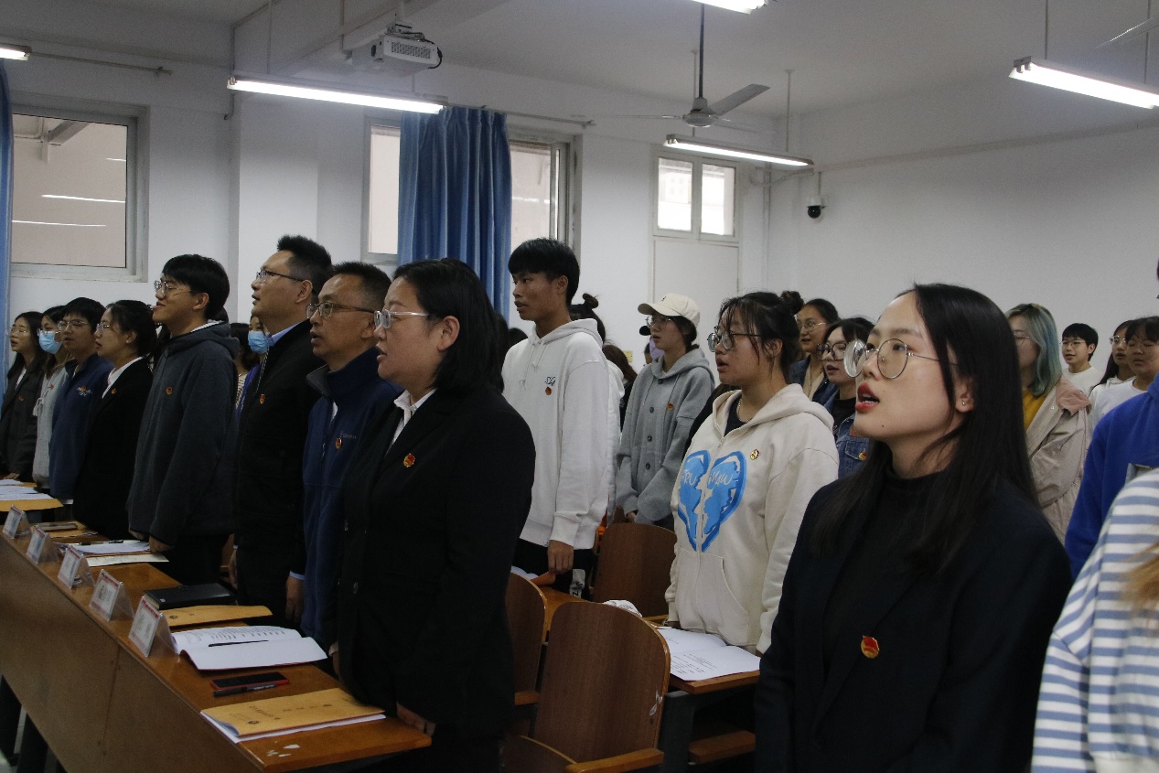 在全体奏唱国歌后,学院党总支副书记邱媛致大会开幕辞。她肯定了自学院成立以来学生会和学生干部的工作成就,并对此表示感谢。其次,对学生会和学生干部提出了四点希望和要求:要带领广大同学牢固树立马克思主义新闻观、要提高服务学院建设的能力和水平、要统筹抓好基层组织文化建设和要加强学生会自身建设。