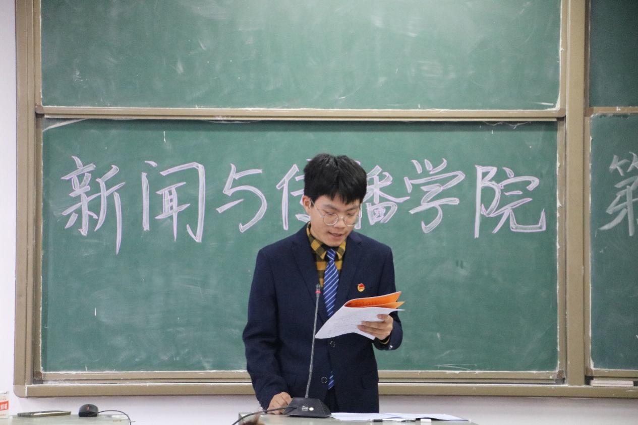 大会上,校学生会代表杜怡彬致辞,她代表校学生会向新传院第二次学生代表大会以及学生会工作顺利进行表示美好祝愿。学生会主席团代表卢锦城作题为《坚持服务中心大局,坚持服务广大同学,坚持服务基层基础;深化新时代学生会改革,为建设服务型学生组织而奋斗》的工作报告,他从紧贴青年团员,紧抓平台建设;树立团学品牌,建立工作模式;勇担责任,开拓创新,扎实推进学生会工作等三个部分向老师与同学们汇报了学生会工作,展望了未来工作。