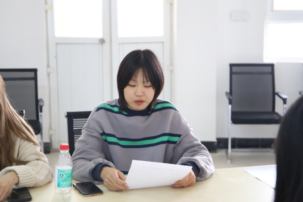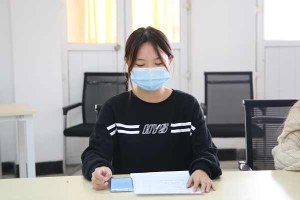 随后,学生会监察部干事张雯静就疫情防控工作发表了自己的心得与感悟,与部门新进成员交流了工作经验,并感谢大家自疫情以来的辛苦工作。孟黎明老师对其进行了肯定与鼓励。
