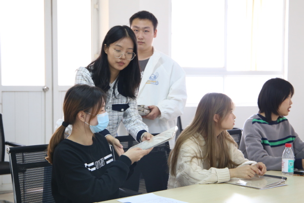 学院学工办为感谢学生会监察部全体成员长期以来为疫情防控工作付出的贡献,特准备纪念品,由王一老师为各成员分发。