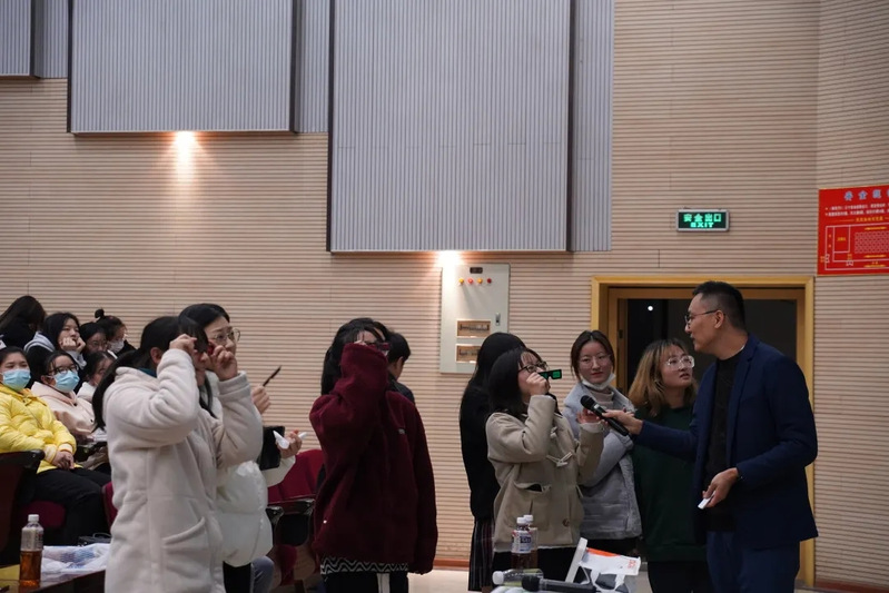 此外,刘嘉鹏老师还向观众展示了可通过三色眼镜看到不同自然场景的科普书《点亮自然》,并邀请学生上台体验,RGB艺术与科普的结合打破了静态阅读的界限。