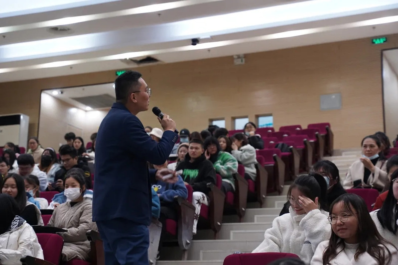 在最后的互动环节,刘嘉鹏老师分享了他参加海外图书博览会的经历,并对同学提出了期望:“做编辑不要求你在某一方面成为大专家,但你得学会成为一个杂家。要不断关注各个领域,并有一定的理解,最终运用到你的编辑出版工作中去。”