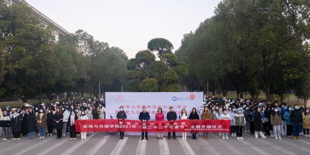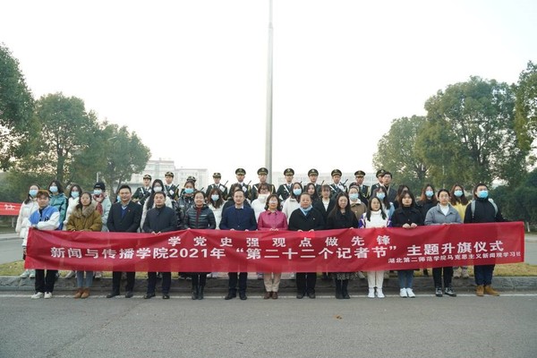 本网讯(通讯员 刘欣然)12月6日上午7时,我校新闻与传播学院(以下简称“新传院”)于南门升旗台隆重举行2021年“第二十二个记者节”活动月主题升旗仪式。新传院院领导徐晓、陈瑛、邱媛、陈欣、何国军及教师代表、马新社全体成员、2020级和2021级全体同学共计400余人参加此次活动。仪式由新传院学工办主任孟黎明主持。