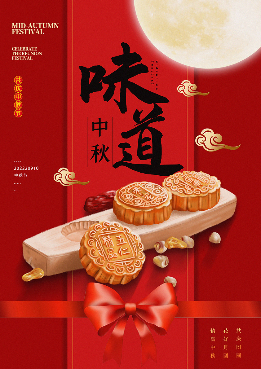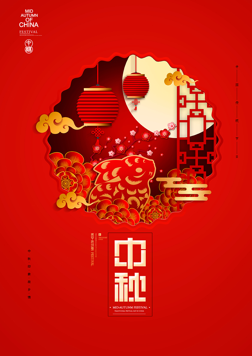 中秋节是中国四大传统节日之一,选择红色系作为图片的主色调,红色象征喜庆,表达了对节日的祝贺。中秋节设计海报融入一些中秋节特有的元素,比如、玉兔、月亮、月饼,加入这一些元素会让中秋节图片更加丰富,也会更有传统节日的韵味。运用特别的排版方式,将中秋元素与图片完美结合,形成一个圆,象征团圆。玉兔代表着人,望着月亮,有一种思乡的情绪在里面。说到中秋节,人们往往以月饼作为礼相送。中秋节的味道,便是月饼的味道。
