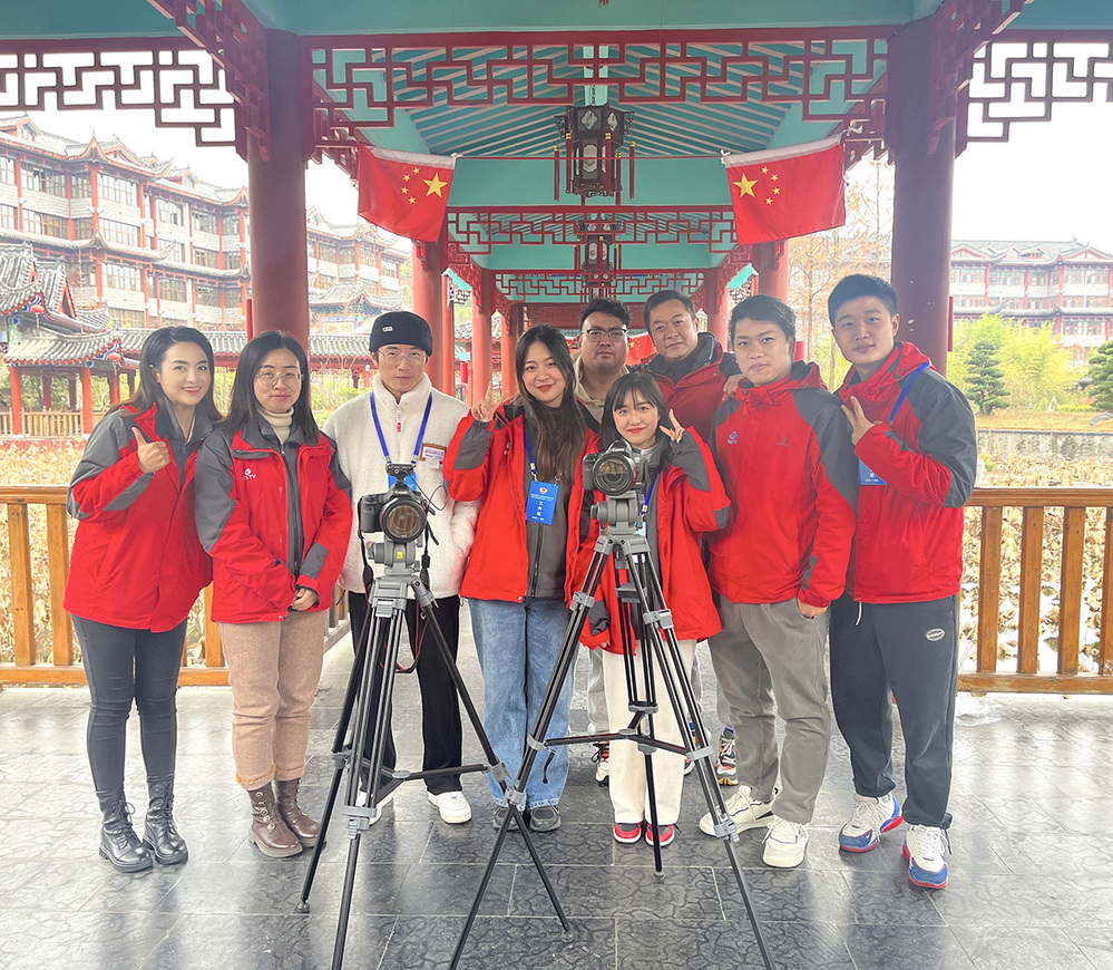 新传学院学生代表与恩施电视台两会报道组记者合影