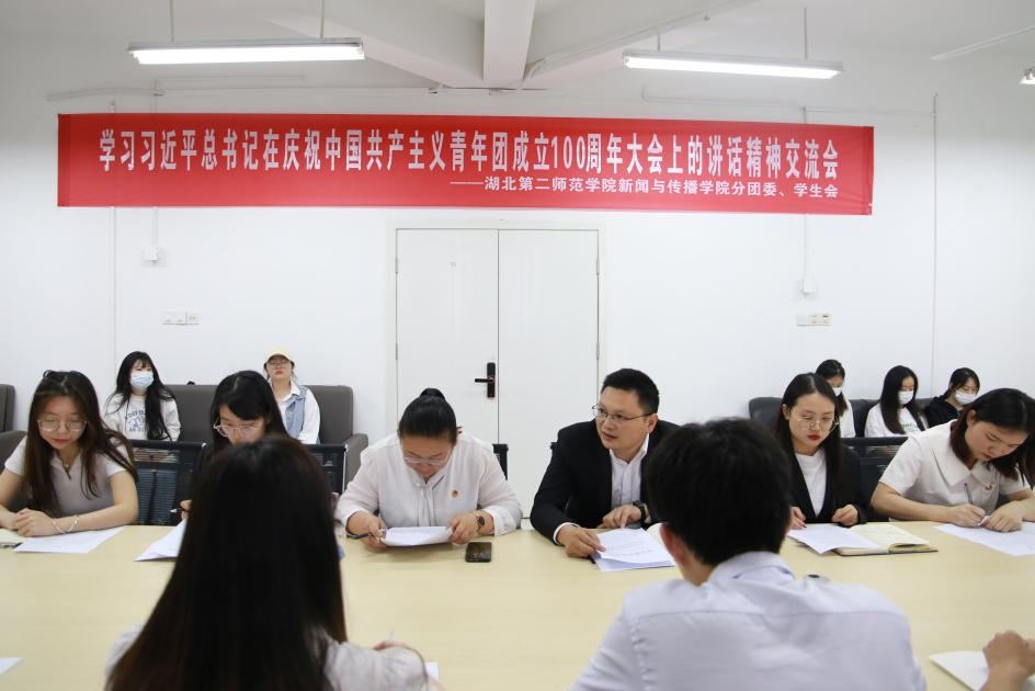 本网讯(院新闻中心记者 段炳丽)5月19日中午,新传学院分团委、学生会在一号楼四楼召开交流会,学习习近平总书记在庆祝中国共产主义青年团成立100周年大会上的讲话精神。学院党总支副书记邱媛,学院分团委副书记王一、学生副书记覃倩、大学生宣传新闻中心指导老师梁芷璐、马新社指导老师熊鹤婷出席交流会,团学组织主要干部参加。交流会由学院分团委书记孟黎明主持。