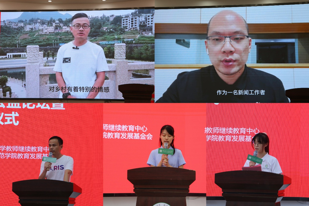 新闻业界合伙人以线上视频的方式参与此次会议,校友、湖北电视台垄上频道记者段晋涛希望能通过宣传让更多的人知道并加入乡村振兴的队伍。校友、楚天都市报极目新闻记者潘锡珩预祝今年暑期的夏令营活动能取得圆满成功。
