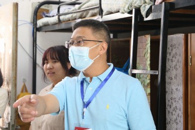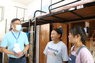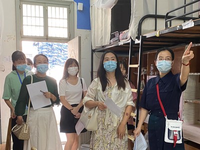 与此同时,陈欣、何国军及新传院领导老师前往寝室问候新生。到访老师对新生人员到齐情况,是否核酸检测,寝室安全、卫生以及装修等问题进行询问了解。陈欣对丰富寝室文化内涵的行为表示赞赏,祝愿新生有美好的校园生活!何国军说到:“大家要完成从高中到大学的转变,要与辅导员老师多沟通多交流,尽快适应大学新环境。”