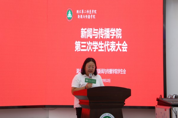 本网讯(通讯员 龚杨依)9月22日晚,新闻与传播学院(以下简称“新传院”)在一号教学楼七楼圆顶教室召开第三次学生代表大会。院党总支副书记邱媛,院团委学生副书记冯淳博,实习辅导员叶倩、刘梦莎出席会议,团学组织干部及各年级学生代表团参加。院分团委副书记王一主持会议。