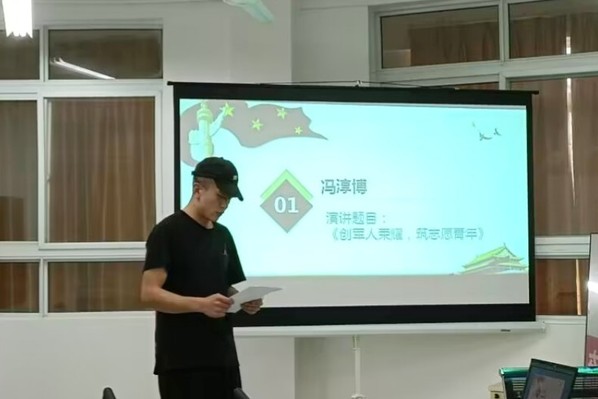 图为参赛选手冯淳博演讲《创军人荣耀,筑志愿青年》