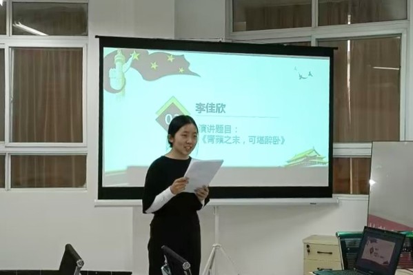 图为参赛选手李佳欣演讲《青蘋之末,可堪醉卧》