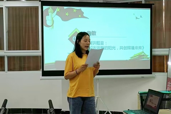 图为参赛选手詹敏演讲《沐浴党的阳光,共创辉煌未来》