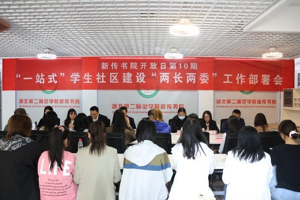 本网讯(院新闻中心见习记者 程江宇)10月13日下午,新闻与传播学院在中区五栋新传书院召开“一站式”学生社区建设“两长两委”工作部署会。新闻与传播学院党总支书记徐晓、党总支副书记邱媛、副院长何国军、学工办主任孟黎明,全体教师党支部书记、学生党支部书记、2022级辅导员,院学生会及2022级班长、寝室长、生活委员、心理委员代表参加。会议由学院团委副书记王一主持。