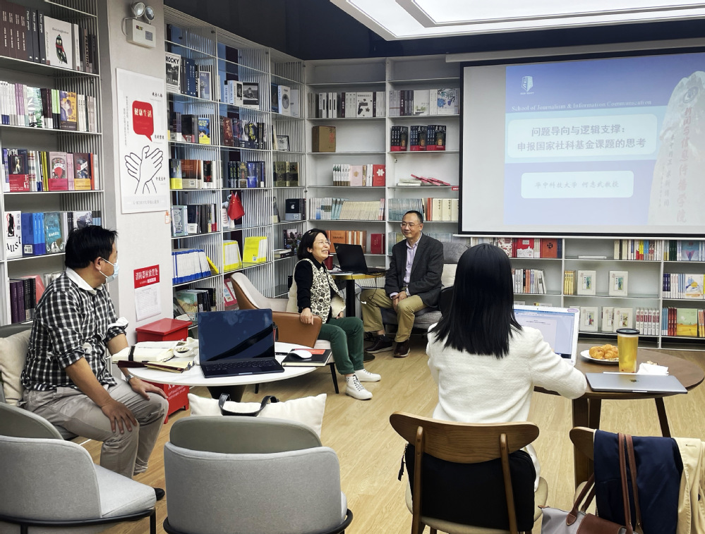 本网讯(吴尚哲肖南)2022年10月12日下午2点30分,华中科技大学何志武教授受邀在湖北第二师范学院图书馆一楼倍阅樱园书店,开展了名为《问题导向与逻辑支撑:申报国家社科基金课题的思考》的讲座。湖北第二师范学院新闻与传播学院陈瑛院长、何国军副院长以及部分老师参与此次课题讲座。