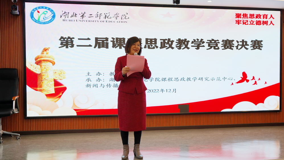 (通讯员杨雯)12月8日,学校在1号教学楼数字马院教室举办第二届课程思政教学竞赛决赛,副校长夏力出席现场,新闻与传播学院院长陈瑛主持。