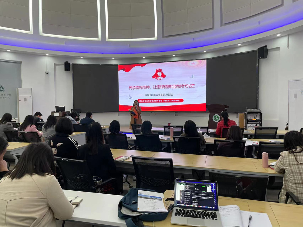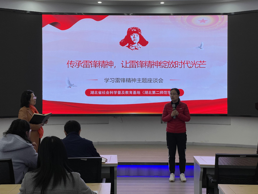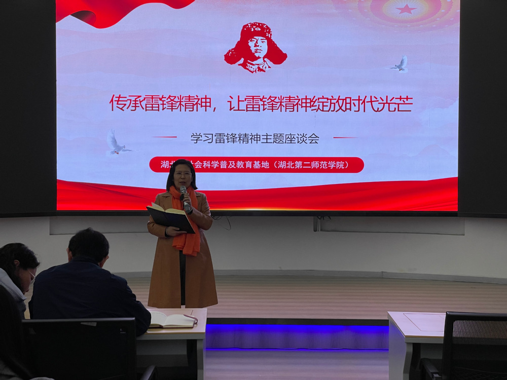 科普基地负责人、湖北第二师范学院新闻与传播学院院长陈瑛带领大家学习习近平总书记关于传承和弘扬雷锋精神的重要指示,她指出作为大学教师应认真学习贯彻习近平总书记对弘扬雷锋精神作出的一系列重要论述,充分理解雷锋精神,将其内化于心,鼓励大家将雷锋精神带到教学中,为学生做榜样。之后,她为大家播放了辽宁广播电视台的微视频纪录片《你的样子》,让大家更好地了解雷锋、认识雷锋。