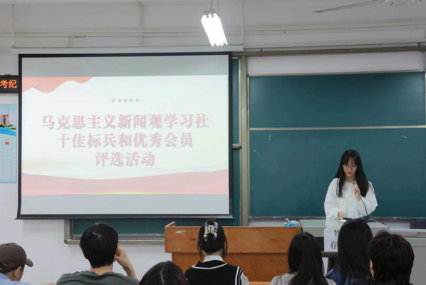 本网讯(院大学生新闻宣传中心记者 严雅馨)为繁荣校园文化生活,推动学生素质教育,促进校园精神文明建设,4月13日下午,新闻与传播学院马克思主义新闻观学习社在1号楼1105教室举行“十佳标兵和优秀会员”评选活动。马新社全体社员参加,活动由组织部王紫嫣主持。