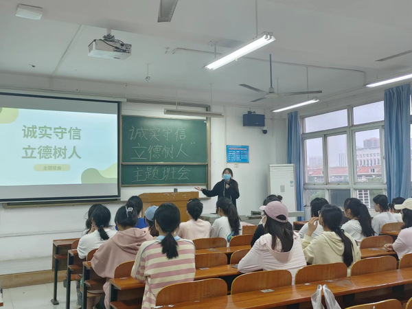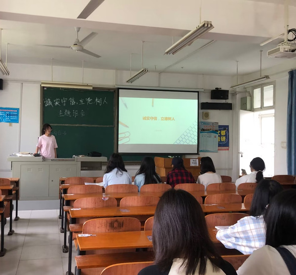 主题班会上,各班宣传委员通过普及诚信相关法律知识、播放诚信相关影片等方式,让同学们认识到诚信的重要性,培养诚信意识。同时,通过讲述诚信相关典型事迹,引导同学们树立起正确的诚信观,自觉将诚实守信融入到日常生活中,真正做到将诚信内化于心,外化于行。