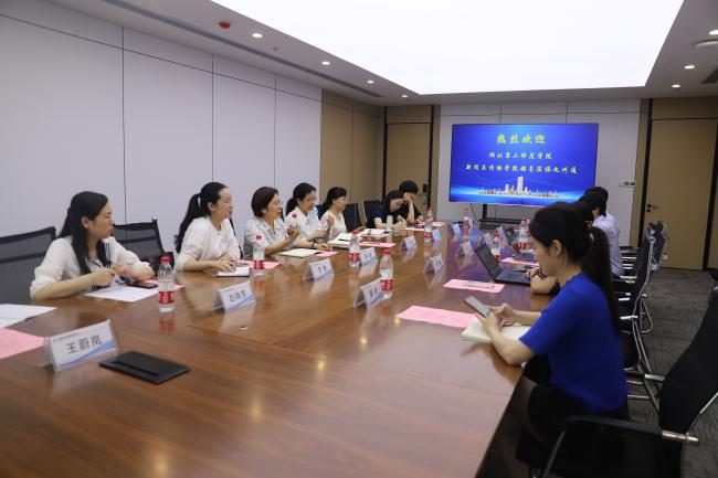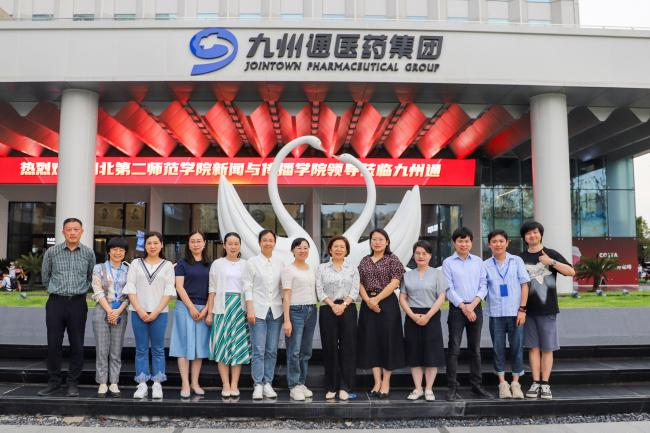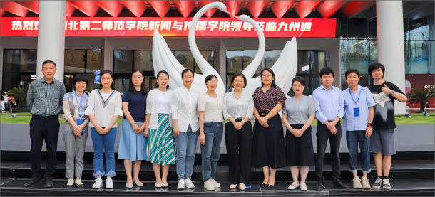 本网讯(通讯员涂盛青 肖南)2023年6月8日,湖北第二师范学院新闻与传播学院(以下称“新传学院”)陈瑛院长、陈欣副院长等一行8人赴九州通医疗器械集团有限公司开展调研交流活动。此次活动旨在加强校企之间的合作与交流,考察企业在数字化转型业务中的传媒运营模式、平台运营成果等,进一步了解本土化医疗中国500强企业在传媒领域的主要需求和用人要求,以提高我院本科人才培养质量。