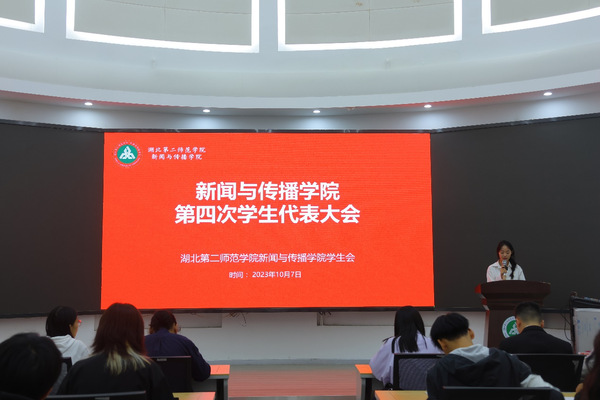 本网讯(大学生新闻宣传中心记者 秦晓媚 彭炘怡)10月7日晚,新闻与传播学院(以下简称“新传院”)于一号教学楼七楼圆顶教室召开第四次学生代表大会。新传院党总支副书记邱媛、学工办主任孙蓓、团委副书记王一与团委学生副书记余游出席会议,院团学组织成员及各年级代表参加。院学生会主席团成员贾璐菲主持会议。