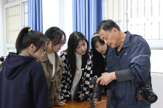 (陈望重老师正在拿着相机为同学们调试参数)