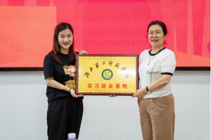 接着,新闻与传播学院院长陈瑛教授为实习就业基地微思敦公司授牌,微思敦公司市场策划部总监肖潇接牌。