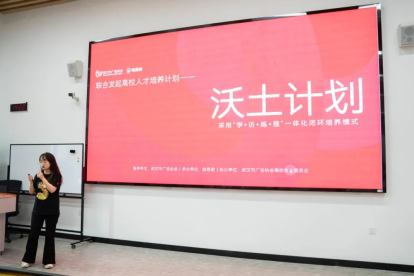 王程老师首先介绍了“沃土计划”的培养模式,随后她谈及在品牌社交营销课程中,“学,访,练,推”是微思敦的四项核心服务,“学”针对平台玩法、营销策略、实操经验进行学习,“访”则是展开走访调研等线下活动,“练”是收获实战经验的必要环节,“推”则能实际帮助课程学员解决岗位就业问题。