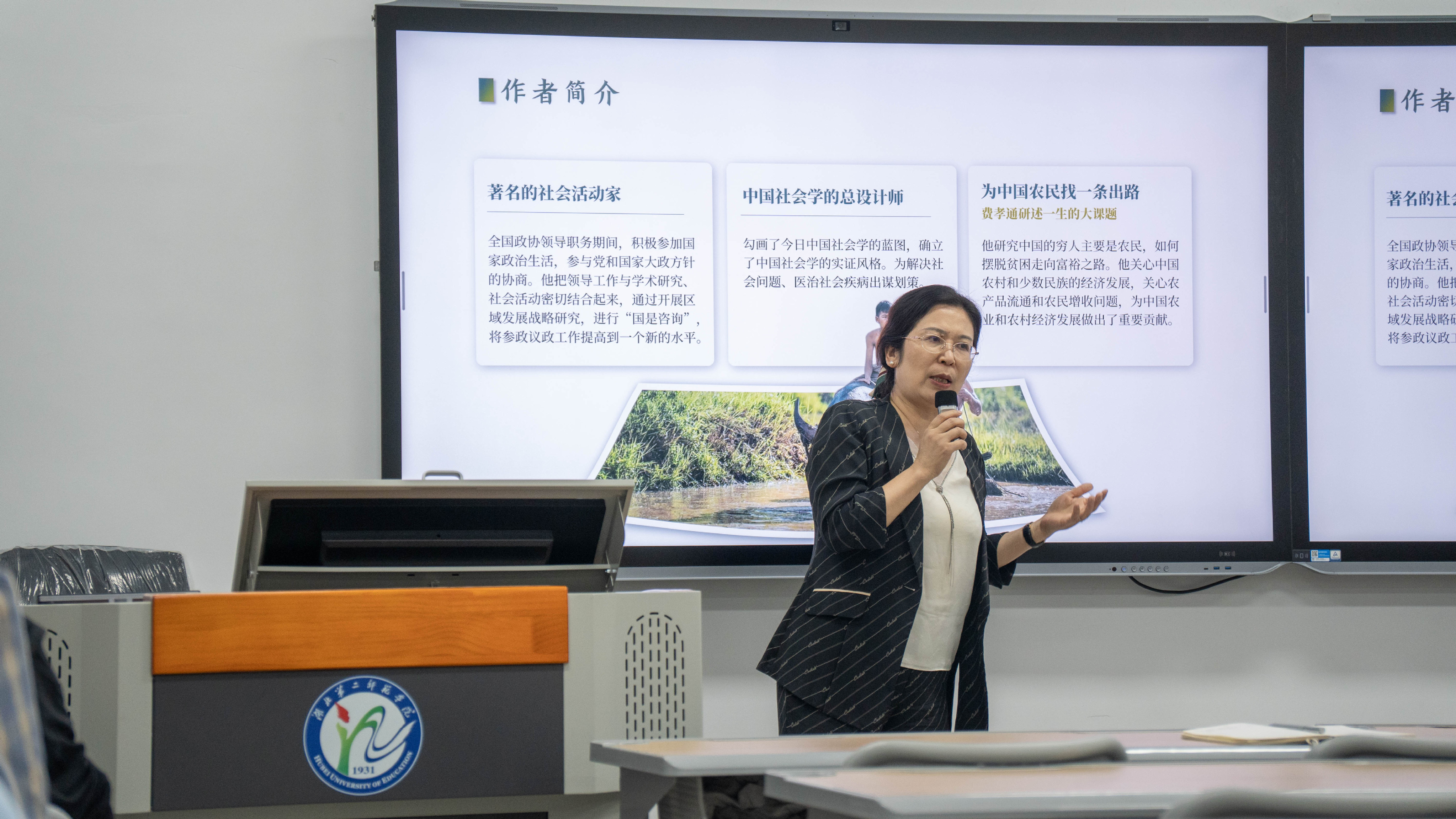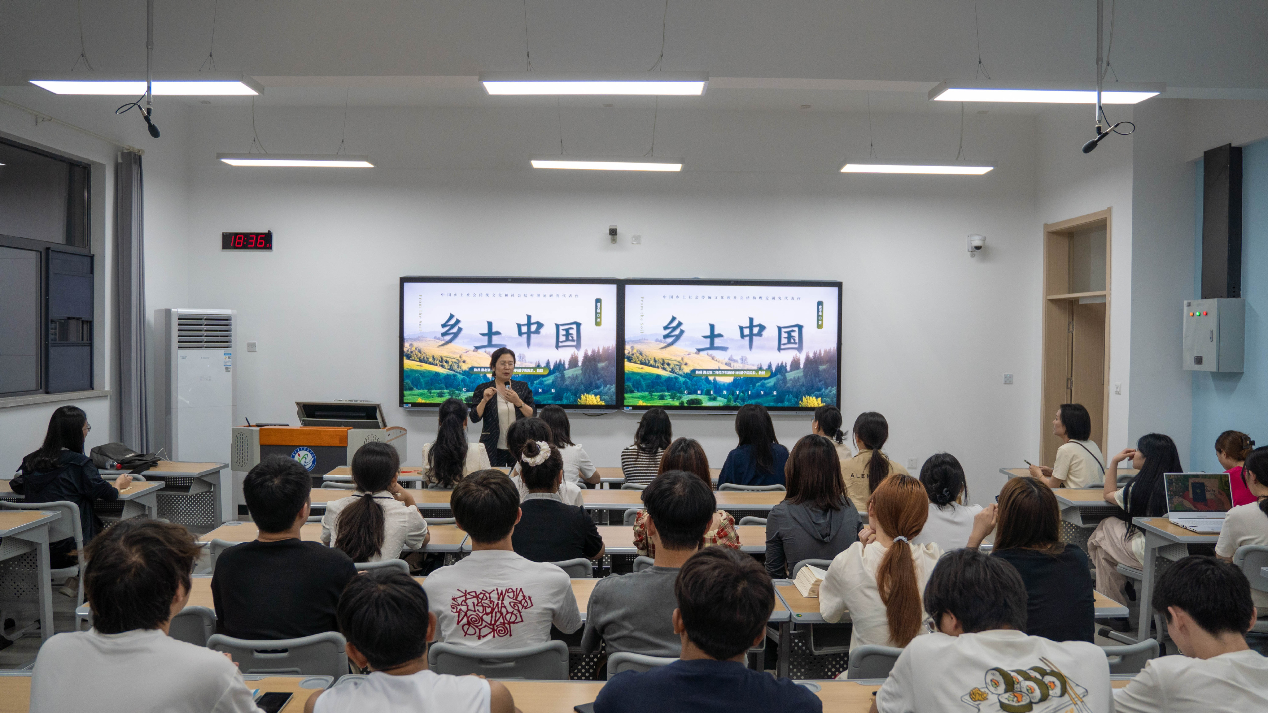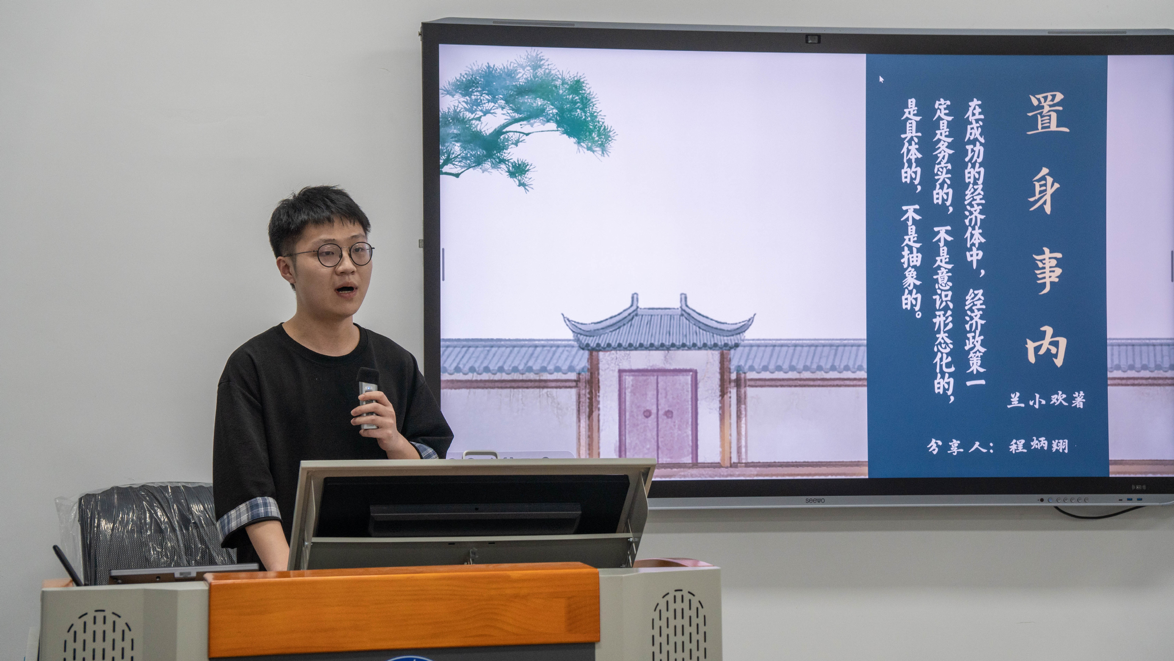 2024年5月29日,湖北第二师范学院新闻与传播学院院长陈瑛教授、21级广告学一班程炳翔同学在博雅楼111教室开展了《乡土中国》和《置身事内》的读书分享活动。在本次读书分享盛会上,两位讲述人不仅对卓越的著作进行了深度剖析与鉴赏,还分享了各自的阅读体悟与心得,实现了智识的共鸣与心灵的交汇。