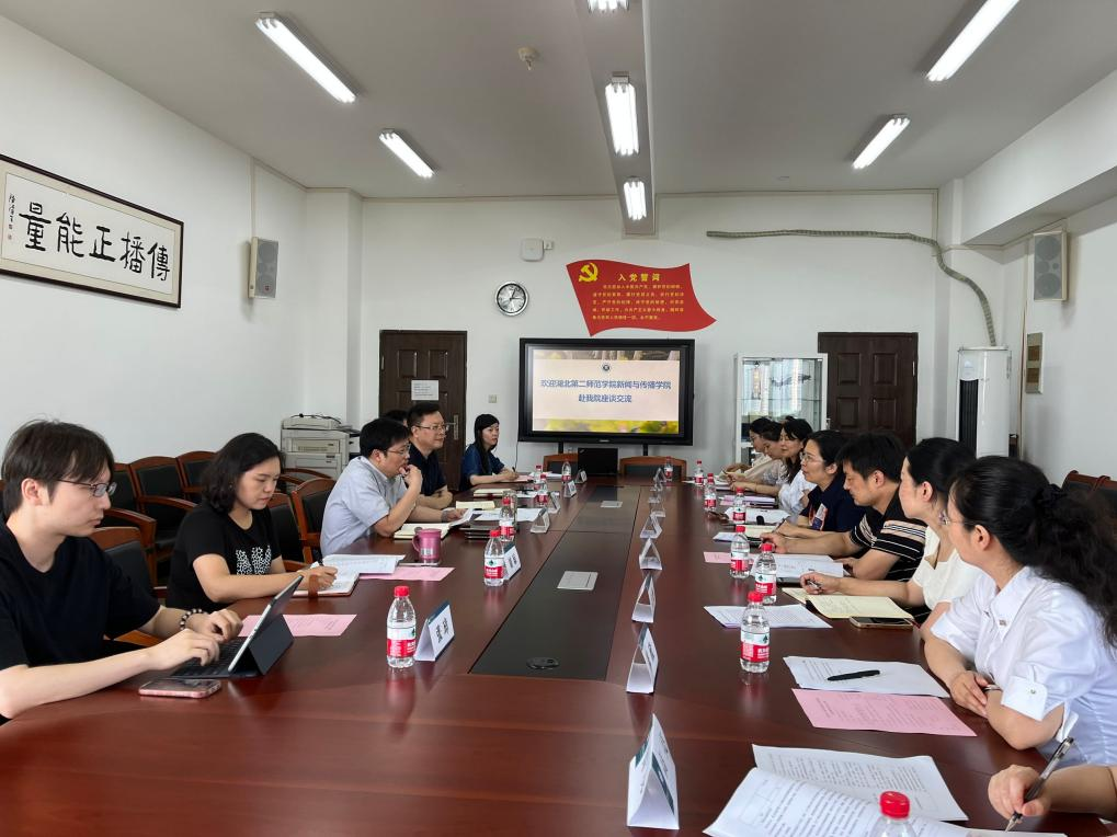 (本网讯 程梦瑶)6月12日下午,新闻与传播学院院长陈瑛、副院长何国军、陈欣带领新闻与传播学院骨干教师一行赴华中师范大学新闻传播学院,就网络与新媒体专业的申报工作调研学习。华中师范大学新闻传播学院党委书记夏守信、副院长陈科及网络与新媒体专业骨干教师出席调研会。