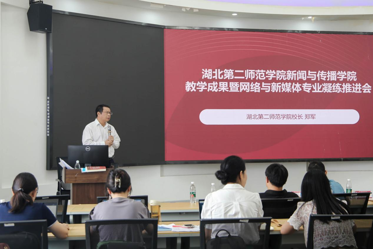 郑军对新传学院近年改革的试点工作取得的成就给予肯定,对新传学院落实“10+8”做出效果寄予厚望。他指出,学院与学校宣传部联合共建成立的新时代文明实践网络思政品牌传播中心,突破了新传学院,在校园里面实现“放开”与“开放”。同时他强调,学院工作更要突破校园,尽可能运用校友资源,拥抱光谷,让教育教学跟上社会的更新换代。