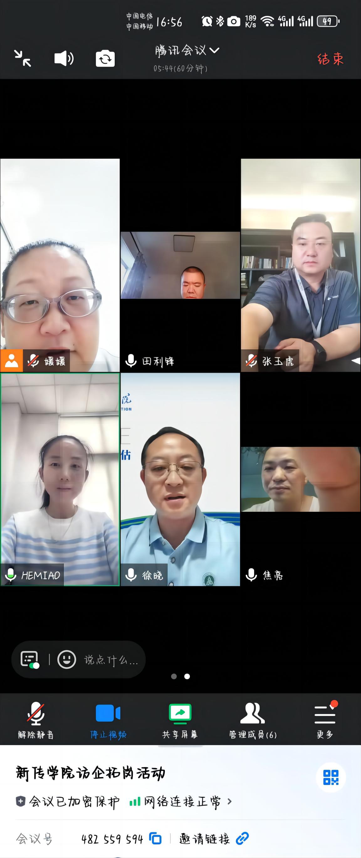 本网讯(通讯员 邱媛)为进一步做好人才供需对接,拓展和深化校企合作共建与服务,促进毕业生高质量就业,8月20 日,湖北第二师范学院新闻与传播学院(以下简称“新传学院”)党总支书记徐晓、副书记邱媛与华智聚合(北京)科技有限公司、上海比学优儿童乐园有限公司、上海伊顺生物科技有限公司、杭州薇家环境艺术设计有限公司等四家企业负责人开展线上访企拓岗促就业专项活动。