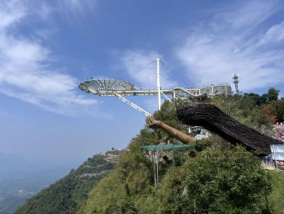 “天空之城真是太美了,来到这里真的不虚此行!”在天空之城景区,采风团一行登上“天空之镜”鸟瞰仙岛湖。“天空之镜”是一座巨大的玻璃观景平台,从悬崖上挑出49.5米。平台的海拔高度为520.1314米,寓意“爱你一生一世”的浪漫。2019年5月,“天空之镜”成功申请吉尼斯世界纪录,获得“全世界最大玻璃底观景平台”称号。除了“天空之镜”,景区还有180度荡幅的悬崖秋千、伸向天空的佛手、镜子迷宫、丛林穿越等游乐项目,其中不少成了网红打卡景点。