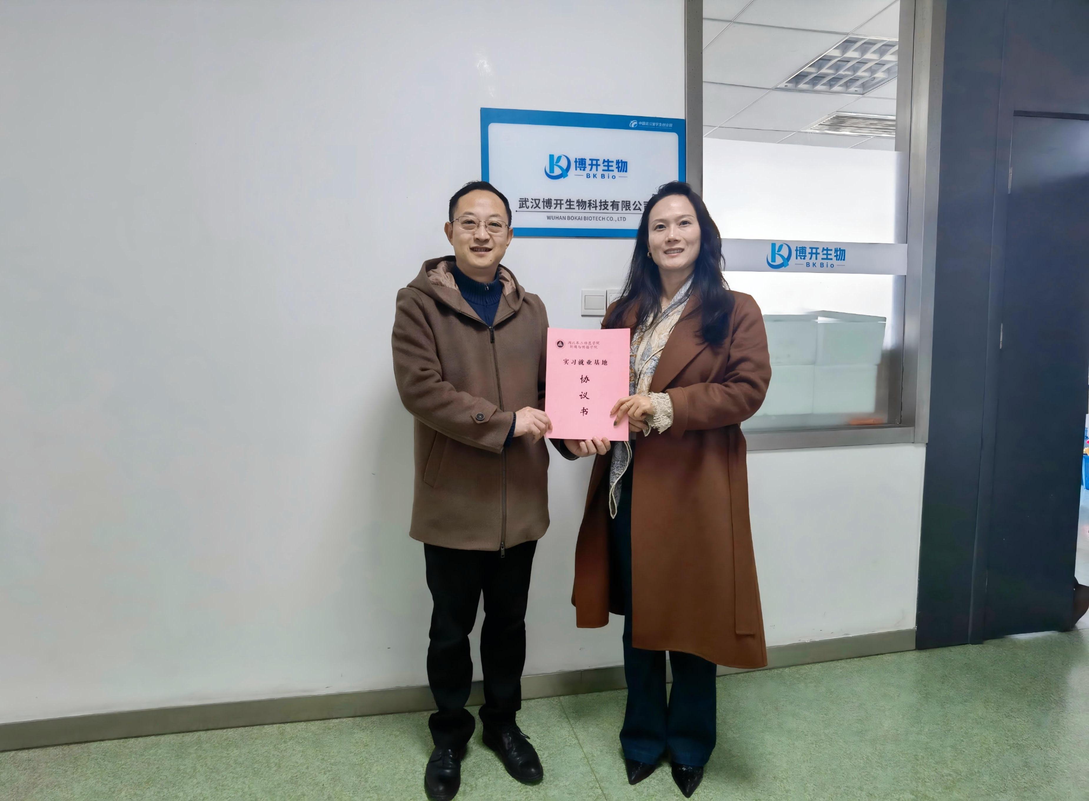在武汉博开生物科技有限公司,徐晓一行参观了该公司实验室等,并就企业人才需求与人才培养模式改革开展了深入交流,签订了实习就业基地协议。
