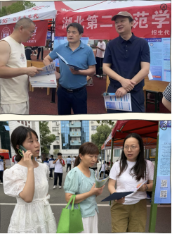 图2 湖北第二师范学院“院长教授团”随州一中二中招生现场,为考生和家长解疑答惑