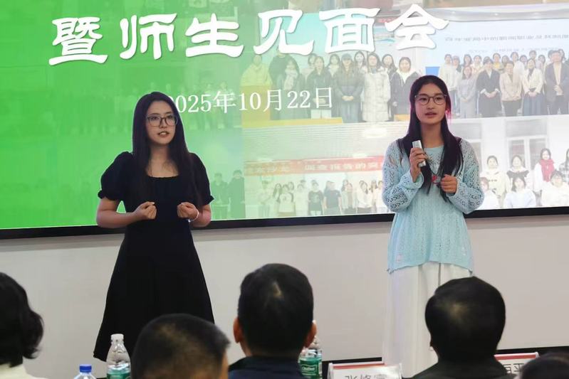 10月22日晚,新闻与传播学院(以下简称“新传院”)于博雅楼420教室举行2025级新生开学典礼暨师生见面会。校党委常委、副校长田恒平出席典礼,师友单位新闻宣传中心主任兼宣传部副部长谢莎\校区协调办公室主任杜锡彬\新传院全体班子成员及教职工、2025级新生参加。会议由党总支副书记邱媛主持。
