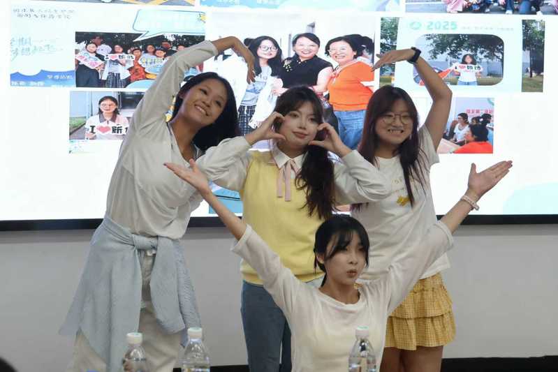 会议上,6名新生带来才艺展示,领导为新生代表们授予院徽。