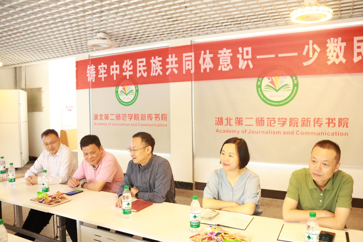 会议由新传院党总支副书记邱媛主持,校新闻中心主任、宣传部副部长谢莎,校区协调办公室主任杜锡彬,期刊社社长郑诗锋,新闻与传播学院党总支书记徐晓,后勤保障部副处长邱涛,后勤保障部宿舍管理科主管张莉以及部分少数民族同学参加会议。
