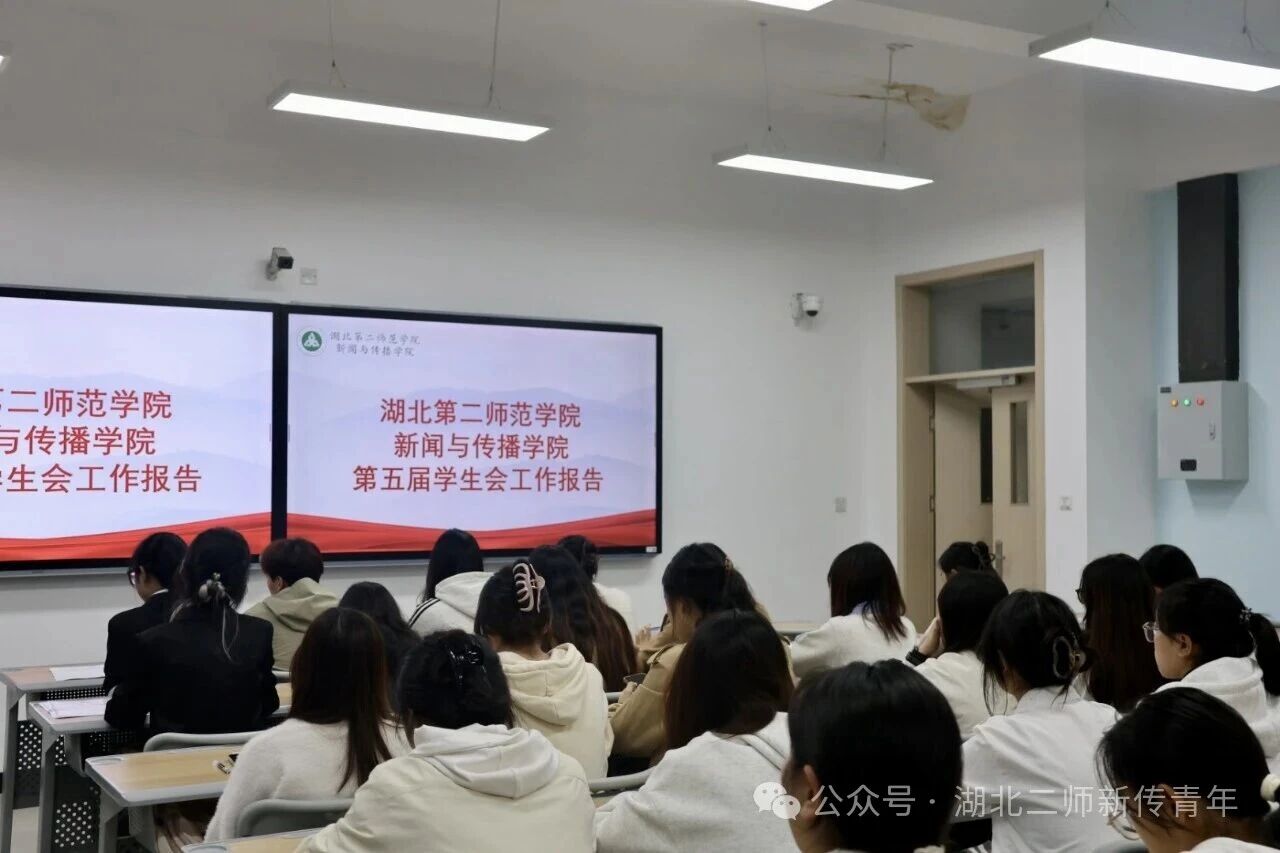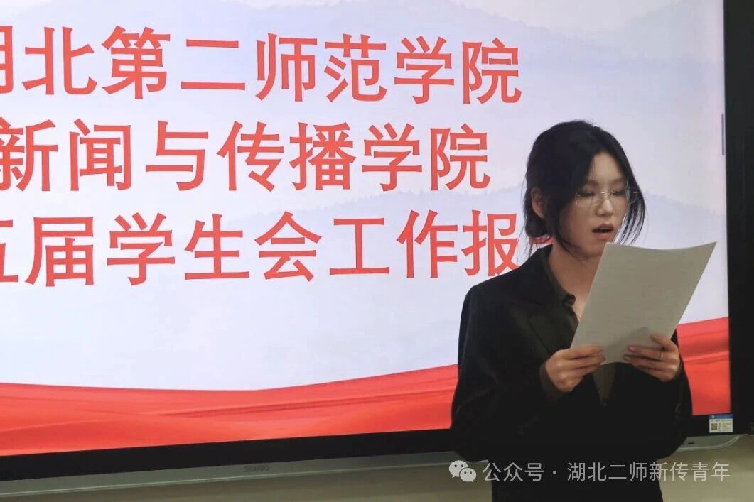 第五届学生会主席团成员王艳阳作《湖北第二师范学院新闻与传播学院第五届学生会工作报告》,全面回顾了过去一段时间学生会在服务同学、组织活动、助力学院建设等方面的工作成果,明确了未来的发展方向。