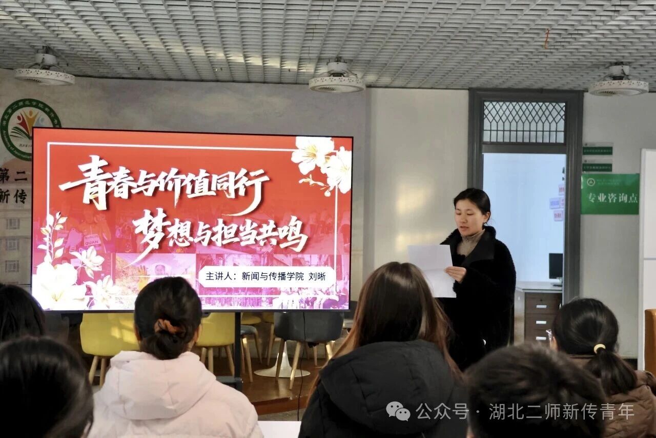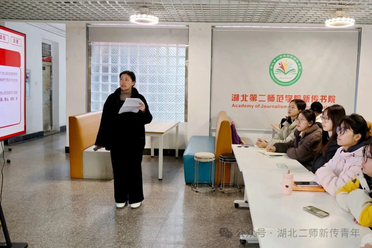 为强化价值引领,筑牢思想根基,12月5日下午,湖北第二师范学院党的二十届四中全会精神宣讲团青年团干刘晰于新闻与传播学院“一站式”学生社区新传书院举办以“青春与价值同行,梦想与担当共鸣”为主题的宣讲会,25级新闻学全体班委参加。