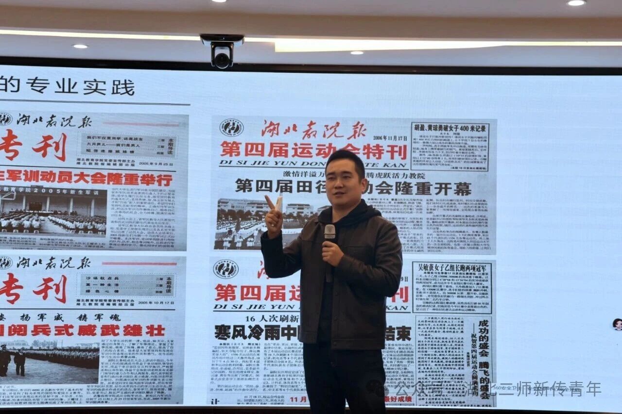 11月6日下午,新闻与传播学院(以下简称“新传院”)在一号教学楼六楼报告厅举办“新生看光谷”专题讲座暨校友沙龙。讲座由党总支副书记邱媛主持,2008届毕业生、盛隆电气集团董事邢文旭主讲,25级全体新闻学学生参加。