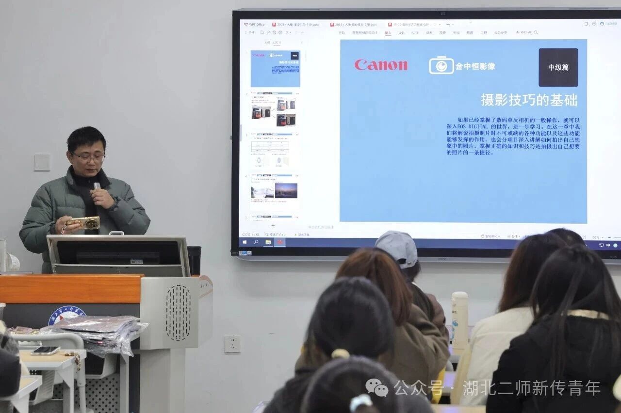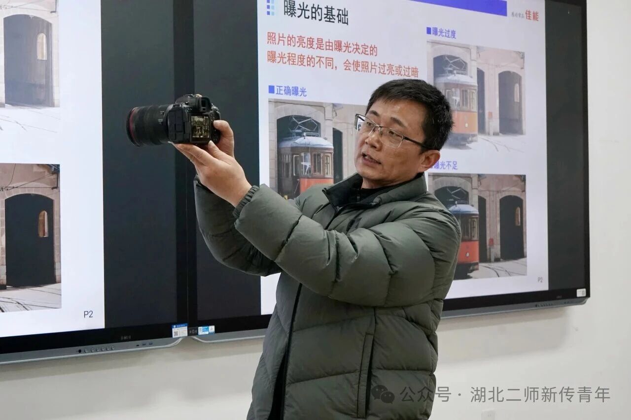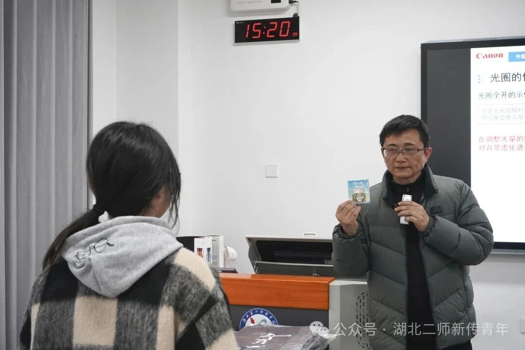 凃汉溪结合自身多年工作与教学经验,围绕相机的核心技巧、档位选择等内容详细展开讲解。从“正确曝光”与“理想曝光”的差异,到各个档位的适用场景,他通过丰富的图片与现场的现身说法,帮助同学们对这些知识有更透彻的理解。针对光圈与快门的核心参数,凃汉溪向同学们传授了“大光圈拍人像、小光圈拍风光” 的实用规律,具体案例的对比展示,也让同学们直观感受到参数调整带来的不同效果。