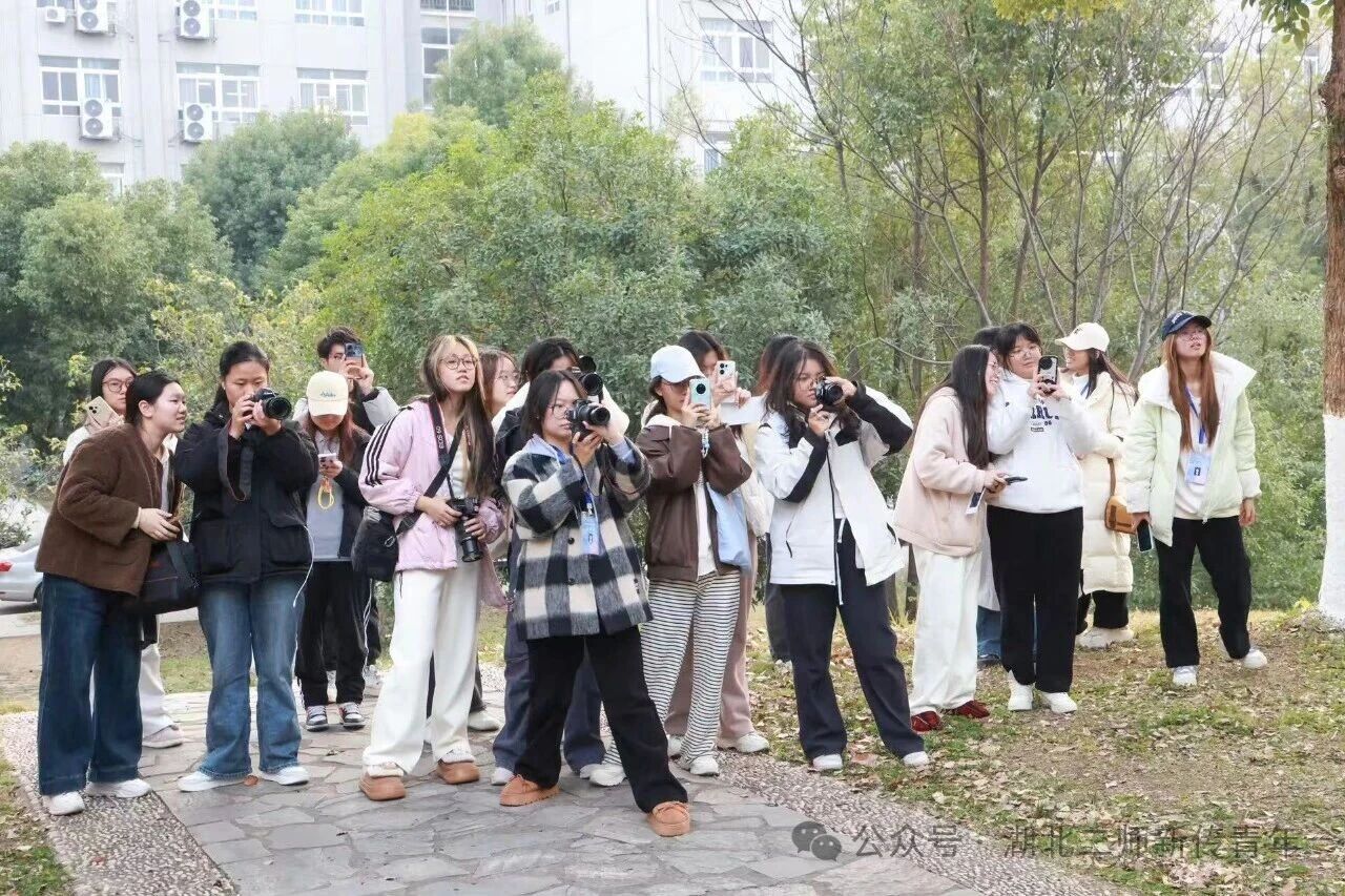 讲座现场互动氛围热烈,同学们积极踊跃回答问题,还获得了老师准备的精美礼品。理论学习结束后,同学们在老师的带领下转移至校园户外场地开展实践活动。根据不同场景,大家积极调整相机参数、转换拍摄角度,将课堂上的理论知识转化为实操能力。